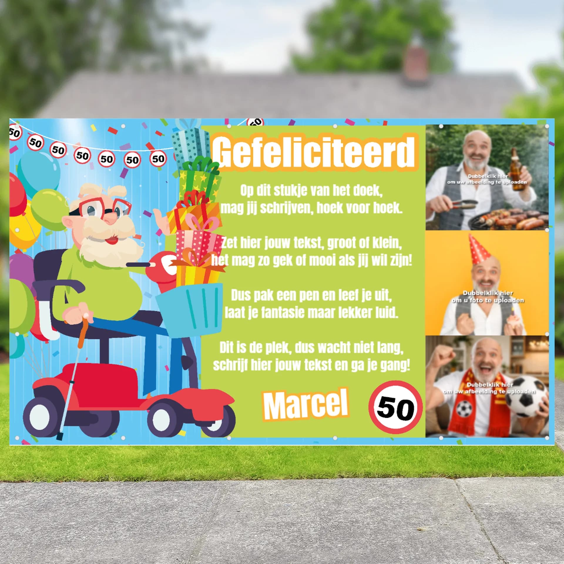 Spandoek Abraham - Abraham op scootmobiel | Spandoekgigant